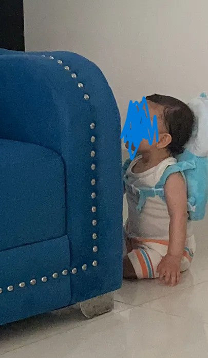 Protector de cabeza para bebé diseñado para brindar seguridad y comodidad mientras el pequeño gatea, juega o aprende a caminar. Su diseño ergonómico con forma de mochila protege la cabeza y la espalda ante caídas.
