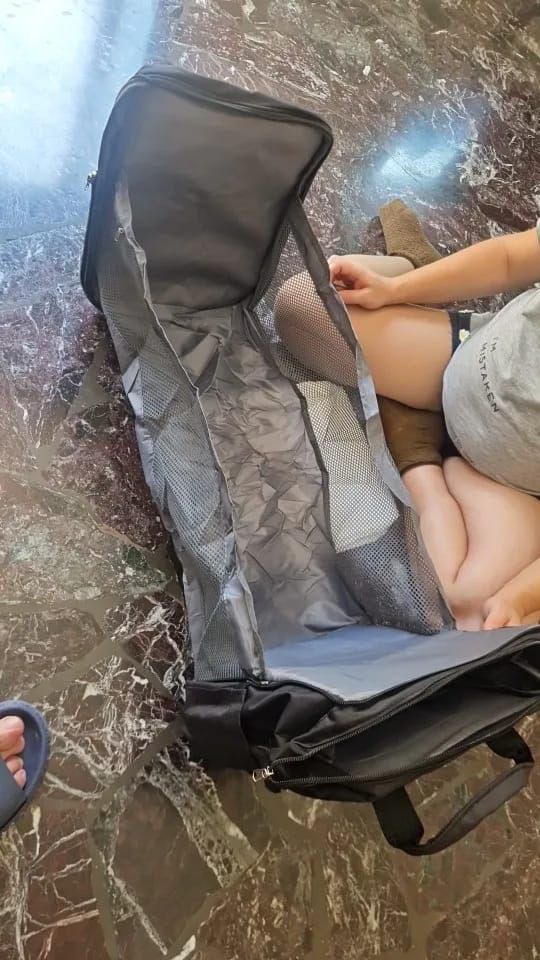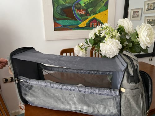 Una mochila práctica que se transforma en cuna portátil en segundos.